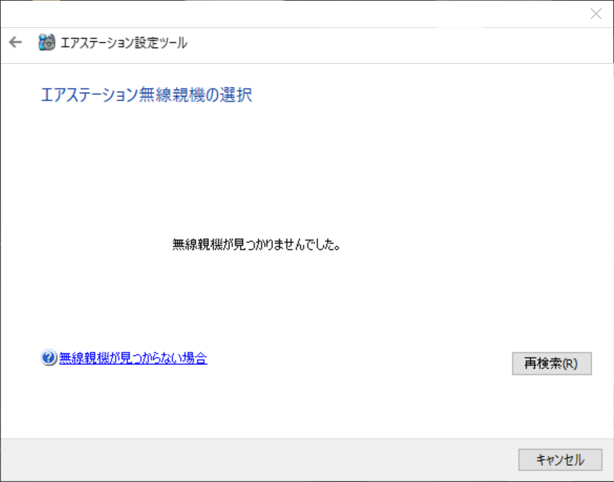 このように「無線親機が見つかりませんでした。」となってしまいます。