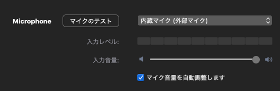 マイク音量の自動調整ですが、ミーティングで他の人が話している間にノイズが入ったりすると、自分の声ではなくてそのノイズに合わせた入力レベルになったりすると思うので、Zoomのマイクのテストで入力音量が決まったら自動調整のチェックは外しておいた方が良いかもしれません。